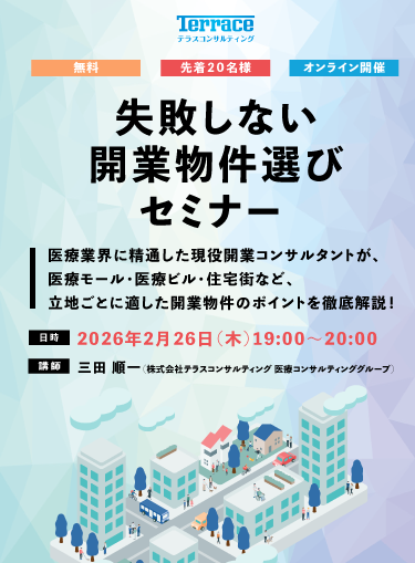 開業地の選定から資金計画、採用立会いまで。ドクターの独立、「はじめての医院開設」を全面的にサポートします。